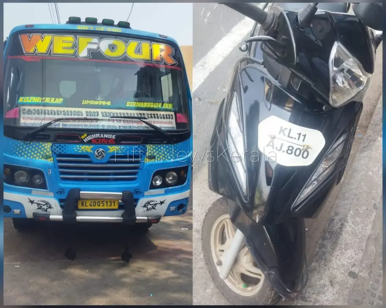 കോഴിക്കോട്: നഗരമധ്യത്തിൽ സ്വകാര്യ ബസ്സും സ്കൂട്ടറും കൂട്ടിയിടിച്ച് സ്കൂട്ടർ യാത്രക്കാരന് ഗുരുതരമായി പരിക്കേറ്റു. കല്ലായി റോഡിൽ കോട്ടപ്പറമ്പ് ആശുപത്രിക്ക് മുൻവശത്താണ് അപകടം നടന്നത്. കോഴിക്കോട് - തിരുവമ്പാടി റൂട്ടിലോടുന്ന 'വി ഫോർ' (വിഫോർ - KL 40 Q 5131) എന്ന സ്വകാര്യ ബസ്സും KL 11 AJ 800 എന്ന നമ്പറിലുള്ള സ്കൂട്ടറുമാണ് അപകടത്തിൽപ്പെട്ടത്. സ്കൂട്ടർ യാത്രക്കാരന്റെ കാലിലൂടെ ബസ്സിന്റെ ചക്രം കയറിയിറങ്ങിയതായാണ് ദൃക്സാക്ഷികൾ നൽകുന്ന വിവരം. ഇദ്ദേഹത്തിന്റെ പരിക്ക് അതീവ ഗുരുതരമാണ്. അപകടം നടന്ന ഉടനെ തന്നെ പരിക്കേറ്റയാളെ കോഴിക്കോട് സിറ്റി ട്രാഫിക്കിന്റെ ആംബുലൻസിൽ അടുത്തുള്ള ആശുപത്രിയിലേക്ക് മാറ്റി. പരിക്കേറ്റ വ്യക്തിയെക്കുറിച്ചുള്ള കൂടുതൽ വിവരങ്ങൾ ലഭ്യമായിട്ടില്ല. അപകടത്തെ തുടർന്ന് പ്രദേശത്ത് ചെറിയ രീതിയിൽ ഗതാഗത തടസ്സമുണ്ടായി.