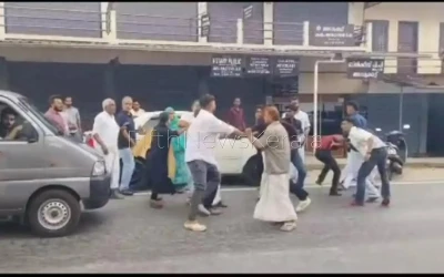 താമരശ്ശേരി: താമരശ്ശേരിയിൽ കാമുകന്റെ സുഹൃത്തുക്കളും പെൺകുട്ടിയുടെ ബന്ധുക്കളും തമ്മിൽ കൂട്ടത്തല്ല്.മുക്കം ചെറുവാടിയിൽ നിന്നും കാണാതായ പെൺകുട്ടിയെ താമരശ്ശേരി കോടതിയിൽ ഹാജരാക്കി സ്വന്തം ഇഷ്ടപ്രകാരം ജീവിക്കാൻ കോടതി അനുമതി നൽകി പുറത്തിറങ്ങിയപ്പോഴാണ് ഇരുവിഭാഗങ്ങൾ തമ്മിൽ കോടതിക്ക് മുൻവശം സംസ്ഥാന പാതയിൽ പരസ്പരം ഏറ്റുമുട്ടിയത്. മുക്കം ചെറുവാടി സ്വദേശിനിയായ പെൺകുട്ടിയെ കഴിഞ്ഞ നാലാം തിയ്യതി ശനിയാഴ്ച രാത്രി 9.30 മുതൽ കാണ്മനില്ല എന്നു കാണിച്ച് ബന്ധുക്കൾ മുക്കം പോലീസിൽ പരാതി നൽകിയിരുന്നു.ഇതേ തുടർന്ന് ഇന്നു രാവിലെ പെൺകുട്ടി കാമുകനായ കാരശ്ശേരി സ്വദേശി ഷാമിലിനൊപ്പം മുക്കം പോലീസ് സ്റ്റേഷനിൽ ഹാജരാവുകയായിരുന്നു.തുടർന്ന് നടപടികൾ പൂർത്തീകരിച്ച് പെൺകുട്ടിയെ താമരശ്ശേരി കോടതിയിൽ ഹാജരാക്കി.